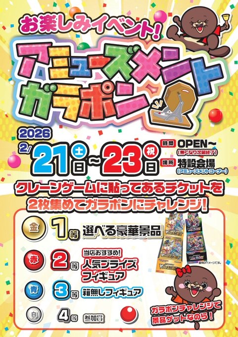 おはようございます☀本日から3日間アミューズメントガラポン開…