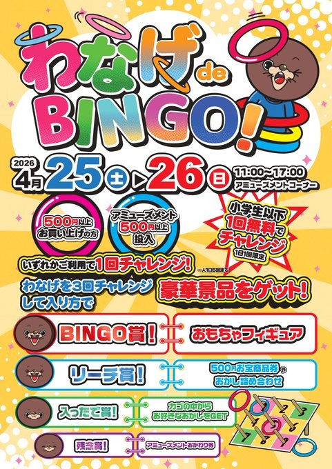 イベント情報🚨 今週の土日はわなげdeBINGO!!を開催します…