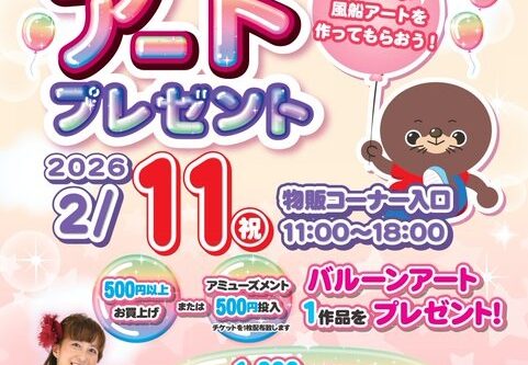 本日こちらのバルーンアートイベント開催です💁♀️🎈500円以上お買い上げまたはアミューズメント500円投入の方にバルーンアート1作品プレゼント致します🎁